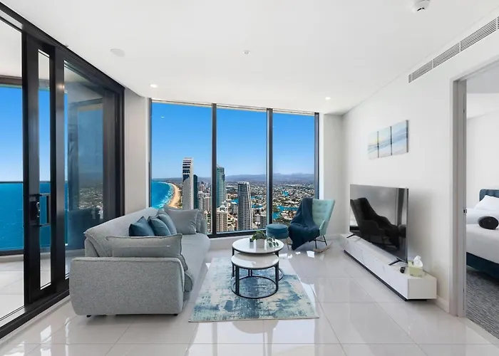El apartamento está ubicado en el distrito Surfers' Paradise, a una distancia de 3 km del Centro de Exposiciones y Convenciones de Gold Coast. El Estadio Metricon está a poco más de 15 minutos en coche del Sky High Amazing Views 2B Luxe Apartment, mientras que la estación de autobuses Ferny Avenue at Palm Avenue está cerca de la propiedad.